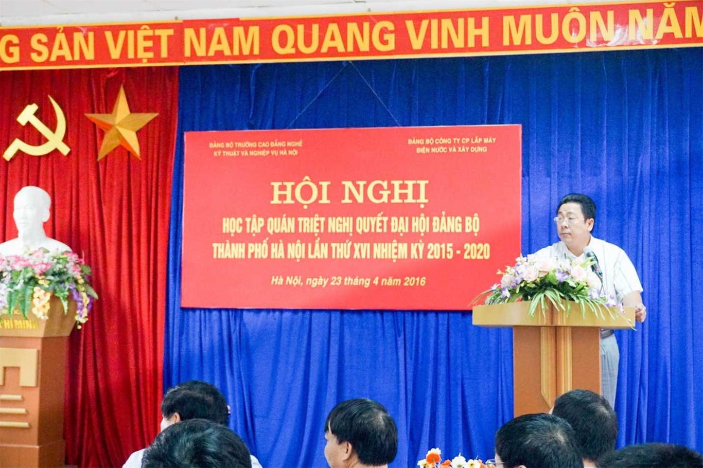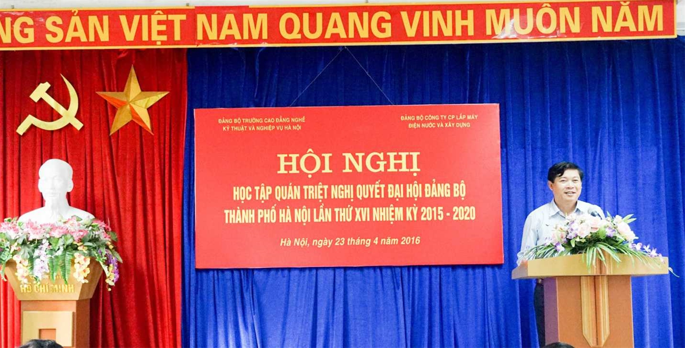 Ngày 23 tháng 04 năm 2016, Đảng bộ Trường Cao đẳng nghề Kỹ thuật và Nghiệp vụ Hà Nội đã phối hợp với Đảng bộ Công ty CP Lắp máy Điện nước và Xây dựng tổ chức Hội nghị học tập, quán triệt và tổ chức thực hiện Nghị quyết Đại hội lần thứ XVI Đảng bộ TP Hà Nội, nhiệm kỳ 2015 - 2020 cho toàn thể cán bộ, đảng viên thuộc hai Đảng bộ