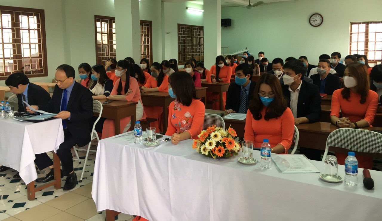 Phát biểu tại Hội nghị, đồng chí Lê Hồng Ngọc - Bí thư Đảng ủy, Hiệu trưởng nhà trường đã báo cáo tóm tắt kết quả thực hiện nhiệm vụ năm 2021, phương hướng triển khai nhiệm vụ năm 2022 và báo cáo tài chính. Đồng chí ghi nhận và tri ân những cống hiến của tập thể Cán bộ, giáo viên, công nhân viên trong năm học đặc biệt vừa qua, mặc dù dịch bệnh COVID-19 diễn biến phức tạp, tiến độ đào tạo và công tác chuyên môn bị ảnh hưởng không nhỏ, toàn thể cán bộ, giáo viên, công nhân viên trong một số giai đoạn phải chuyển từ trạng thái làm việc trực tiếp sang trực tuyến, nhưng với tinh thần trách nhiệm và thái độ tích cực vượt qua khó khăn, tập thể trường đã hoàn thành xuất sắc nhiệm vụ năm học. Đồng chí Hiệu trưởng hy vọng, trong năm học mới 2021-2022, phát huy những thành quả đạt được, cán bộ, giáo viên, công nhân viên Nhà trường sẽ tiếp tục quyết tâm đoàn kết, phấn đấu đưa trường phát triển ngày một bền vững.