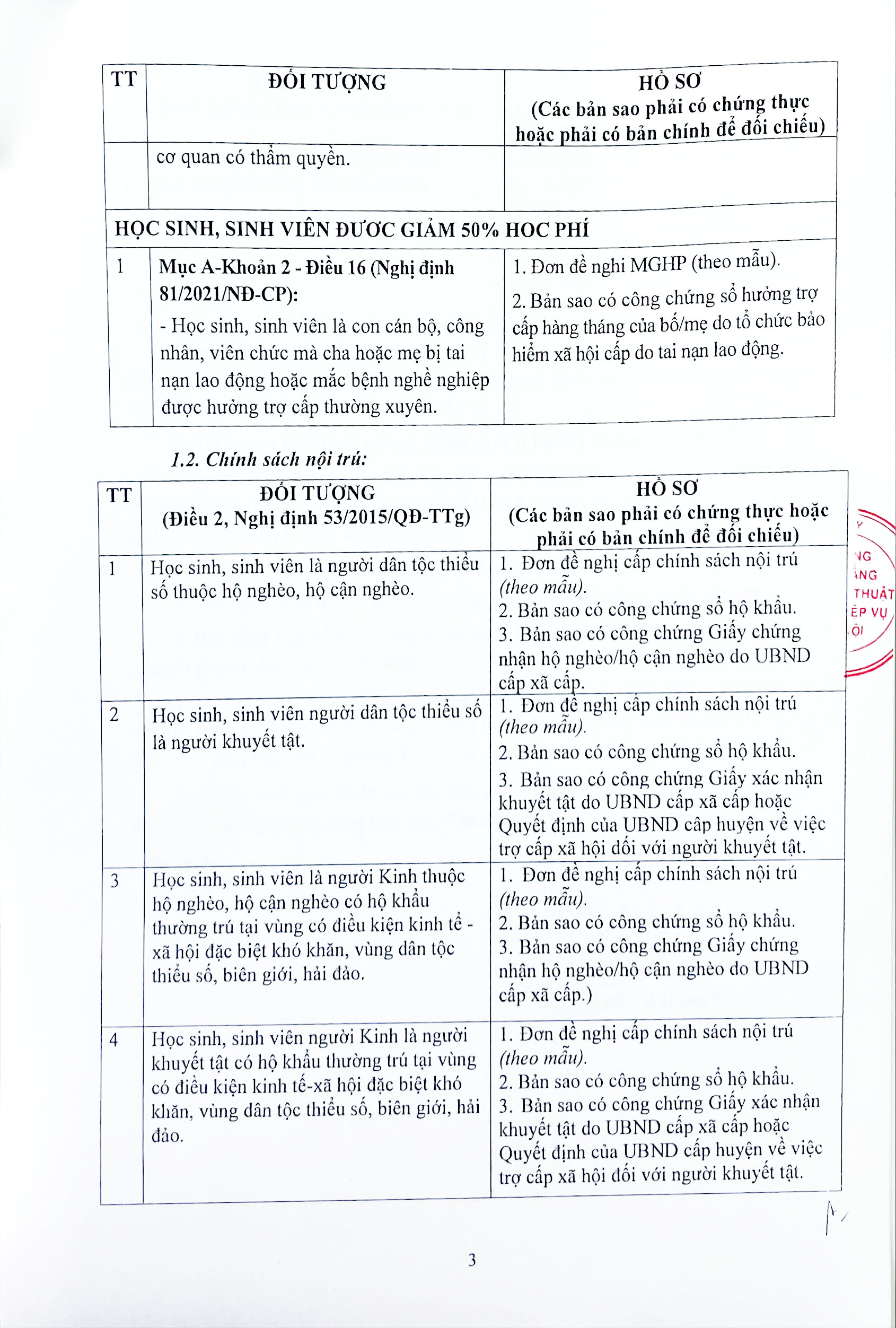 Căn cứ Quyết định số 53/2015/QĐ-TTg ngày 20/10/2015 của Thủ tướng Chính phủ về chính sách nội trú đối với học sinh, sinh viên học cao đẳng, trung cấp;