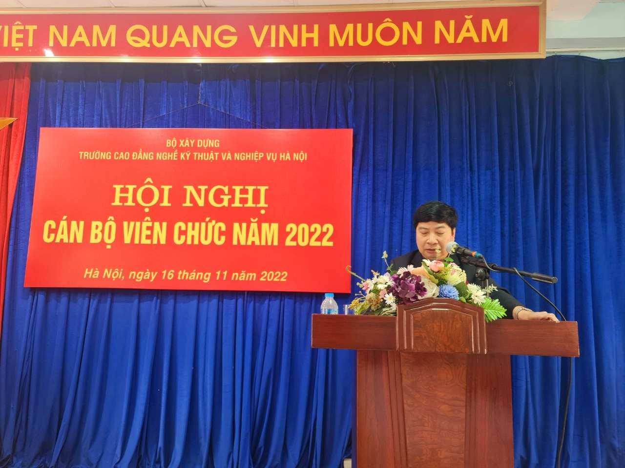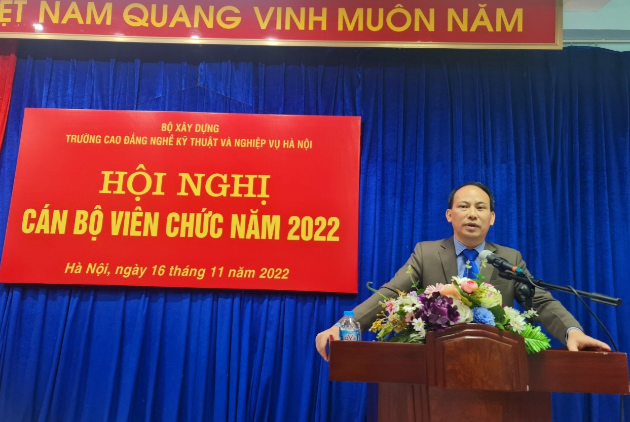 Hội nghị cán bộ viên chức năm 2022 của Trường Cao đẳng Nghề Kỹ thuật và Nghiệp vụ Hà Nội đã được tiến hành trong không khí đối thoại dân chủ, tạo khí thế thi đua sôi nổi với tinh thần đoàn kết cùng hướng tới mục tiêu thực hiện thắng lợi các nhiệm vụ trong năm học mới. Hội nghị đi đến thống nhất và thông qua Nghị quyết, 100% cán bộ viên chức đã biểu quyết thông qua các nội dung và các chỉ tiêu đặt ra trong năm học 2022- 2023.