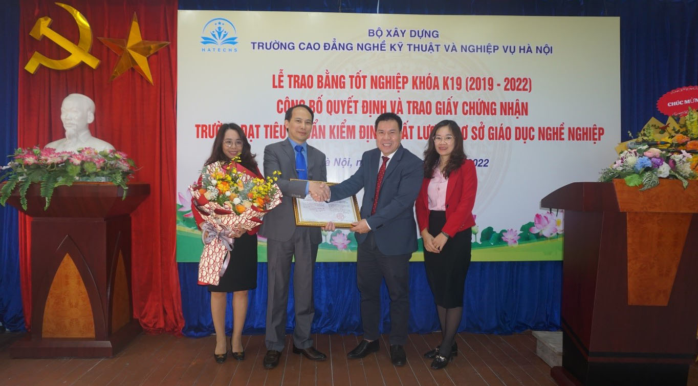 Năm học vừa qua, trường cao đẳng nghề kỹ thuật và nghiệp vụ Hà Nội bên cạnh việc đầu tư thêm cơ sở vật chất, mở thêm các ngành đào tạo mới theo nhu cầu của xã hội thì Nhà trường cũng không ngừng nỗ lực cải thiện, hoàn thiện và nâng cao chất lượng đào tạo, Nhà trường đã đón đoàn đánh giá ngoài của công ty CP kiểm định và tư vấn giáo dục Việt Nam đến thực hiện kiểm định chất lượng cơ sở GDNN theo qui định của Bộ Lao động Thương binh và Xã Hội, hôm nay Nhà trường vinh dự được đón nhận "giấy chứng nhận đạt tiêu chuẩn kiểm định chất lượng cơ sở giáo dục nghề nghiệp". Để có được vinh dự này là sự nỗ lực không ngừng của tập thể cán bộ giảng viên, viên chức và người lao động của Nhà trường, cùng với kết quả tư vấn nhiệt tình của đơn vị tư vấn, đặc biệt là sự nỗ lực của hôi đồng tự đánh giá chất lượng GDNN của Nhà trường và ban thư ký, thay mặt lãnh đạo Nhà trường tôi biểu dương sự đóng góp của tất cả các đồng chí và xin gửi lời tri ân, lời cám ơn tới đơn vị tư vấn.
