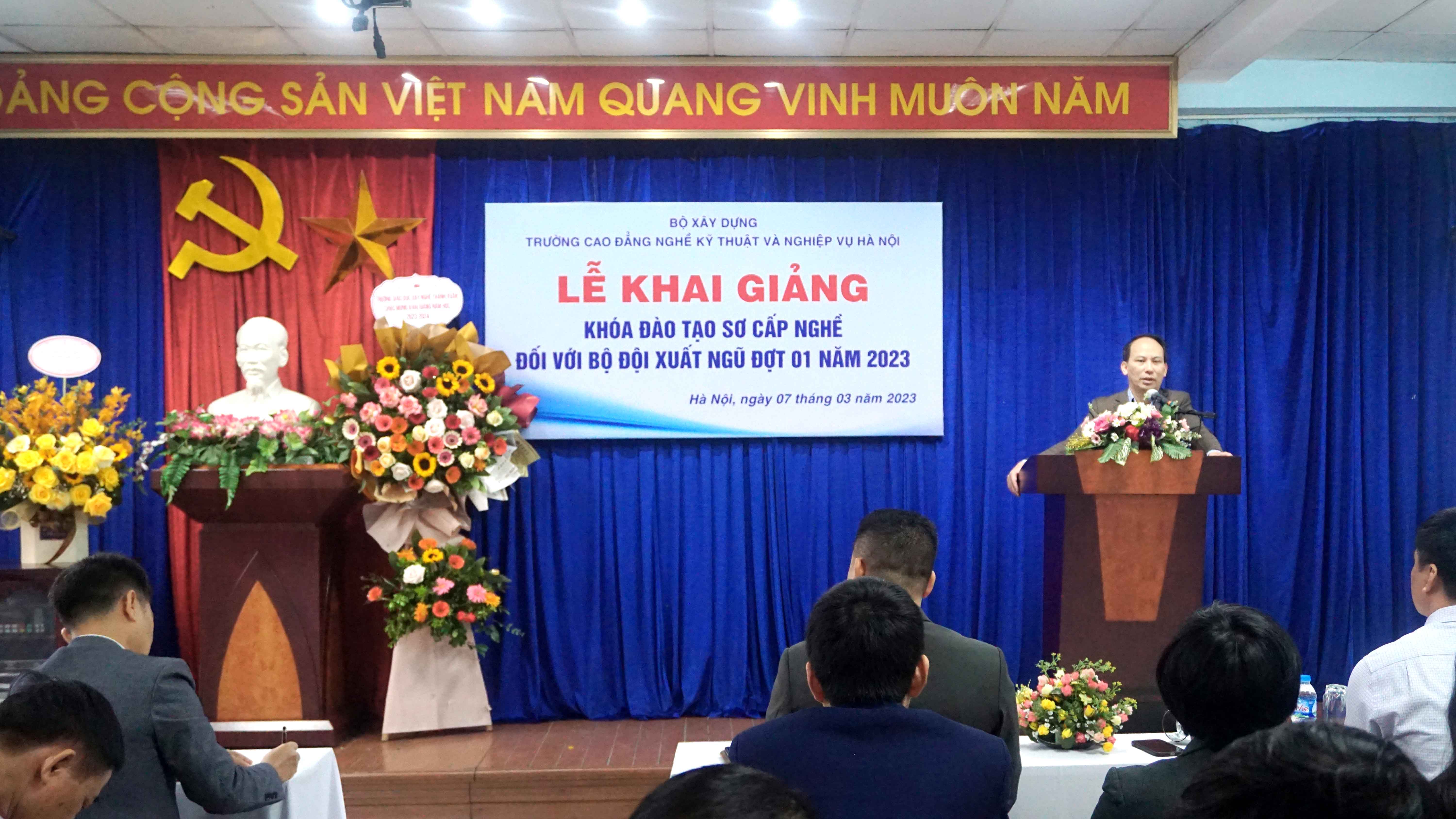 Phát biểu tại lễ khai giảng, thầy Lê Hồng Ngọc - Hiệu trưởng nhà trường khẳng định: Trường Cao đẳng nghề Kỹ thuật và Nghiệp vụ Hà Nội là trường công lập trực thuộc Bộ Xây dựng với bề dày lịch sử hơn 60 năm trong hoạt động đào tạo và cung cấp nguồn nhân lực cho ngành Xây dựng nói riêng và cho xã hội nói chung. Hiện nay, Nhà trường đang đào tạo 18 ngành/nghề với các trình độ Cao đẳng, Trung cấp và Sơ cấp. Nhà trường luôn xác định đào tạo nghề cho bộ đội xuất ngũ là thực hiện chủ trương chính sách của Đảng và Nhà nước hỗ trợ thanh niên đã hoàn thành nghĩa vụ quân sự nhanh chóng có nghề nghiệp để tham gia thị trường lao động góp phần xây dựng đất nước ngày càng giàu đẹp