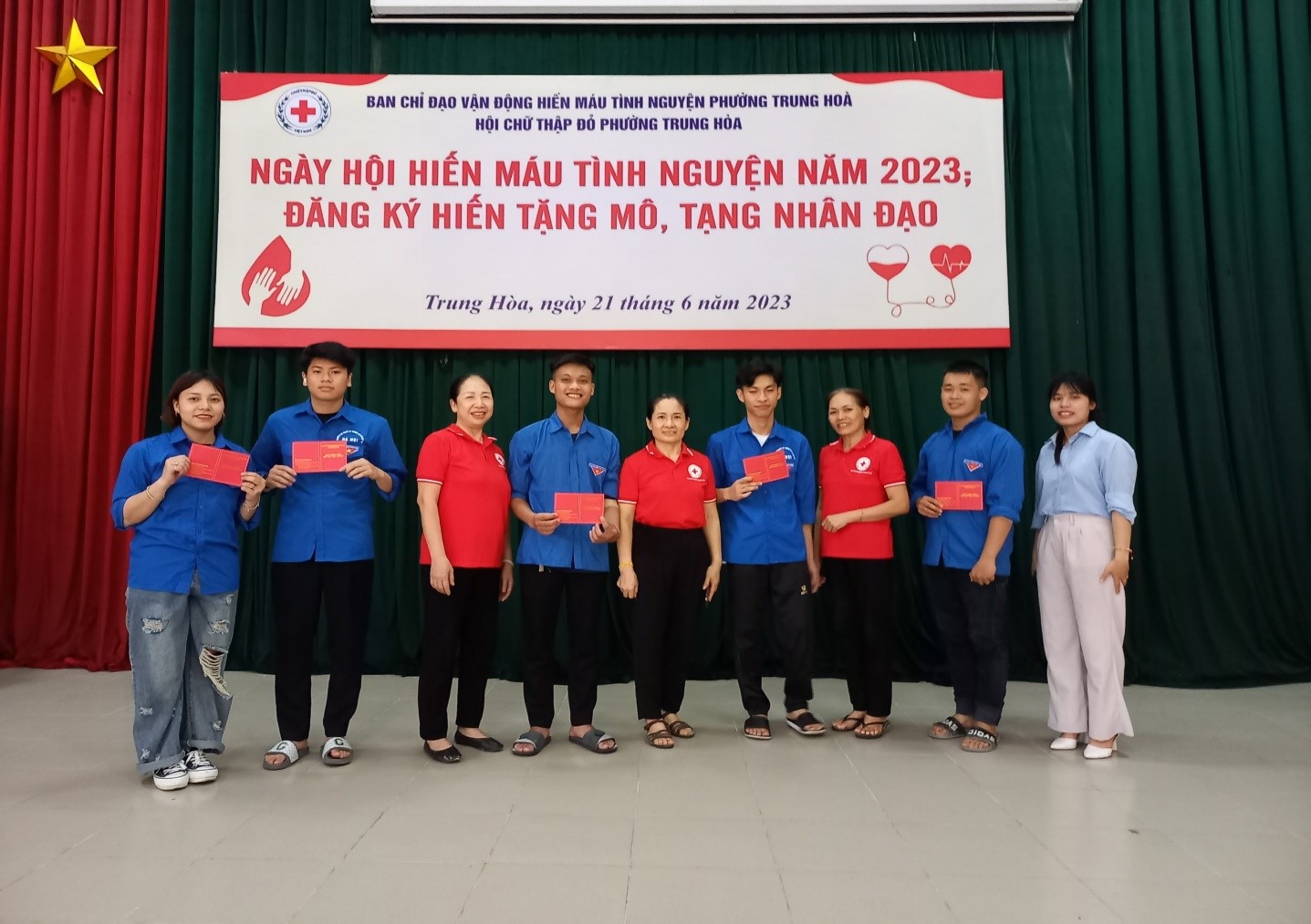 Hưởng ứng phong trào hiến máu tình nguyện năm 2023 của quận Cầu Giấy, thực hiện công văn số 353/UBND-BCĐ ngày 14/6/2023 của Ban chỉ đạo vận động hiến máu tình nguyện phường Trung Hòa, sáng ngày 21/6/2023, đoàn cán bộ, giáo viên và sinh viên Trường Cao đẳng nghề Kỹ thuật và Nghiệp vụ Hà Nội đã có mặt tại Nhà văn hóa phường Trung Hòa, quận Cầu Giấy, Hà Nội để tham gia ngày hội hiến máu năm 2023 trên địa bàn phường.