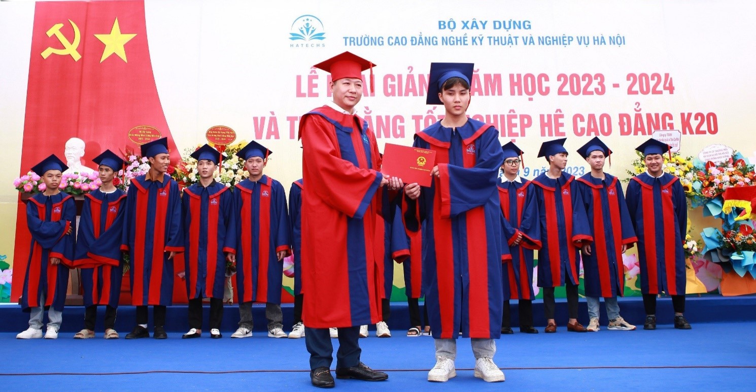 Trong giai điệu âm nhạc sôi nổi, hào hùng của bài hát “Hatechs mái trường tôi”, thầy Hiệu trưởng Lê Hồng Ngọc cùng các vị đại biểu đã trao bằng tốt nghiệp cho các tân kỹ sư, cử nhân, chúc các em vững bước trên con đường tương lai phía trước.