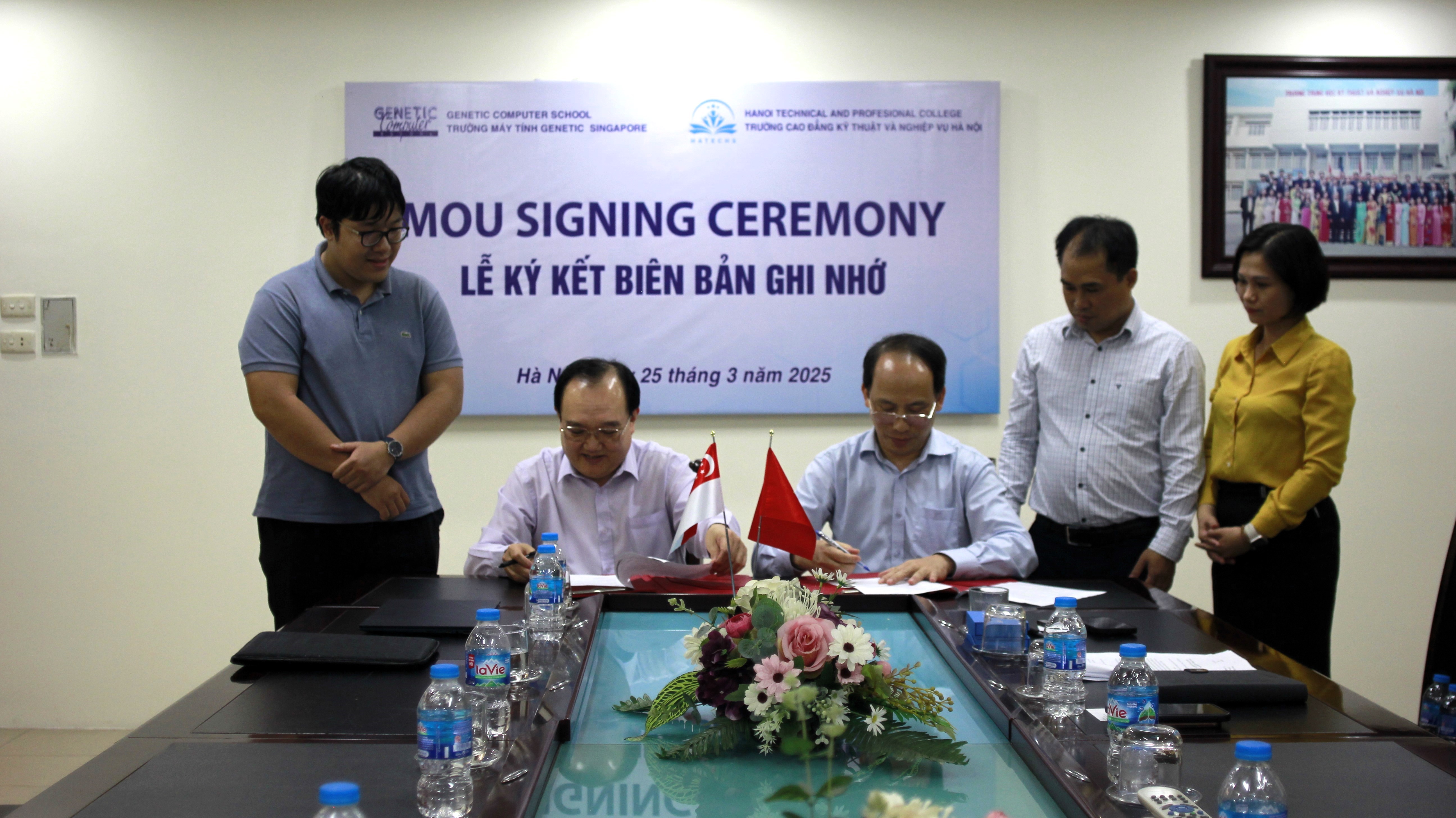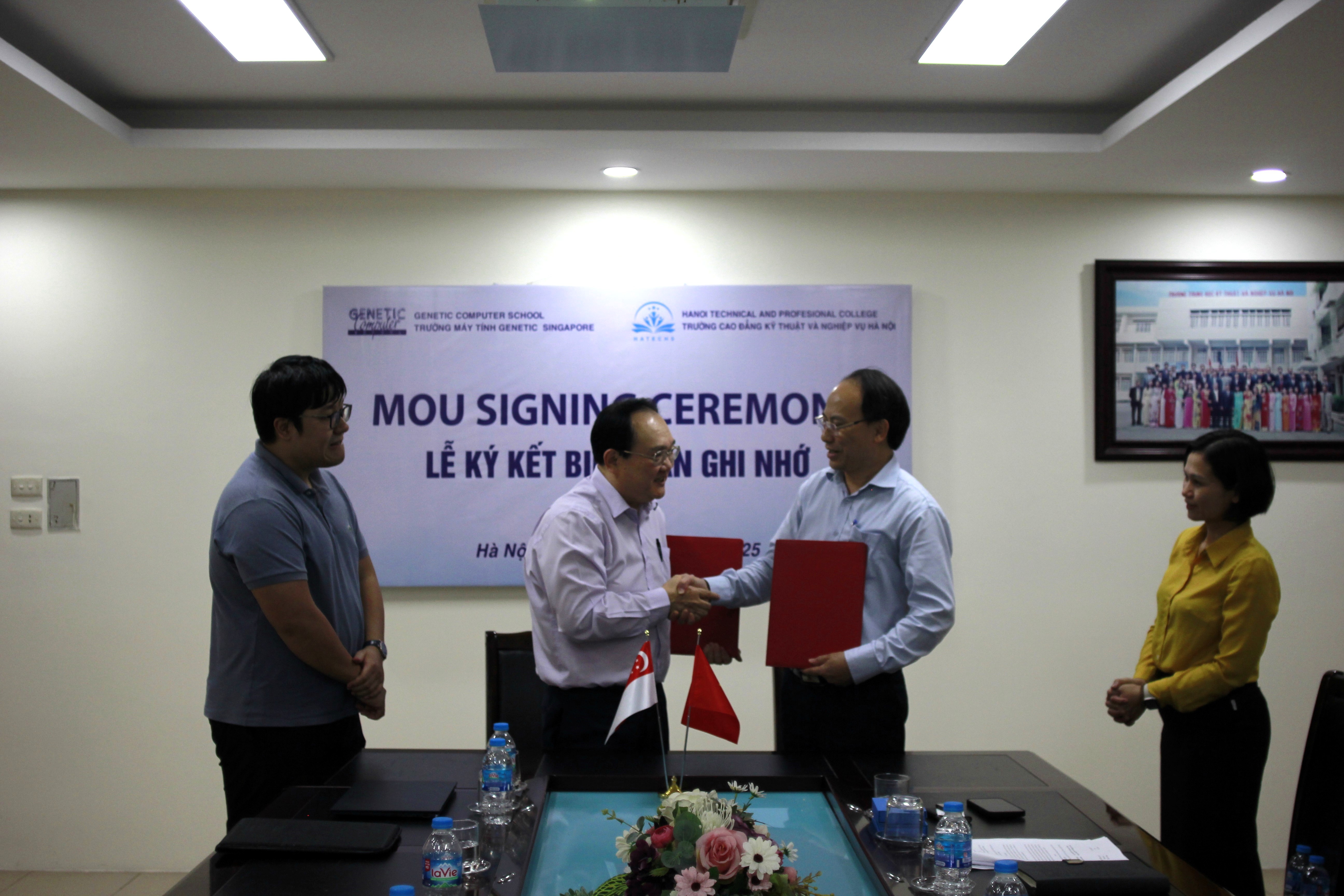 Trong buổi lễ ký kết, về phía trường Cao đẳng nghề Kỹ thuật và Nghiệp vụ Hà Nội có TS.Lê Hồng Ngọc - Bí thư Đảng ủy - Hiệu trưởng nhà trường cùng các đồng chí cán bộ quản lý phòng Hợp tác quốc tế, phòng Đào tạo và khoa Công nghệ thông tin. Về phía trường Máy tính Genetic Singapore, có thầy Hiệu trưởng Mr William Goh đại diện cho Trường.