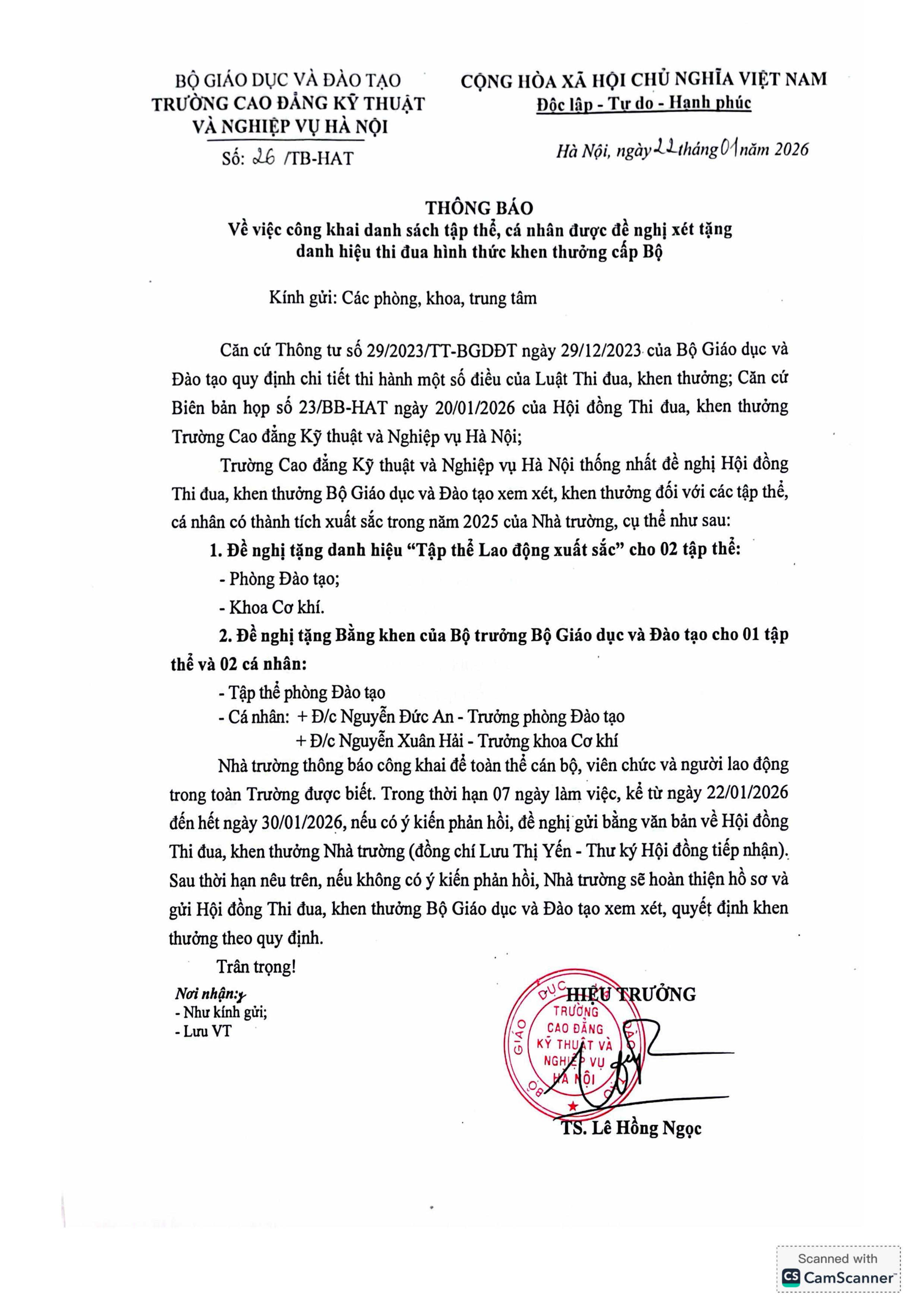 (Hatechs) Công khai danh sách tập thể, cá nhân được đề nghị xét tặng danh hiệu thi đua hình thức khen thưởng cấp Bộ