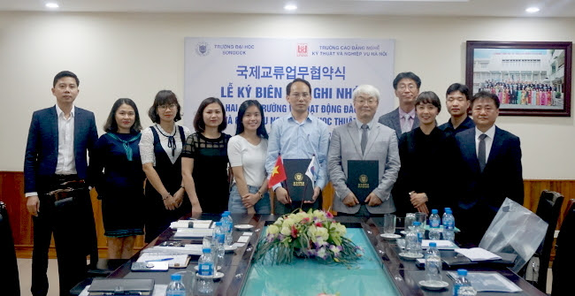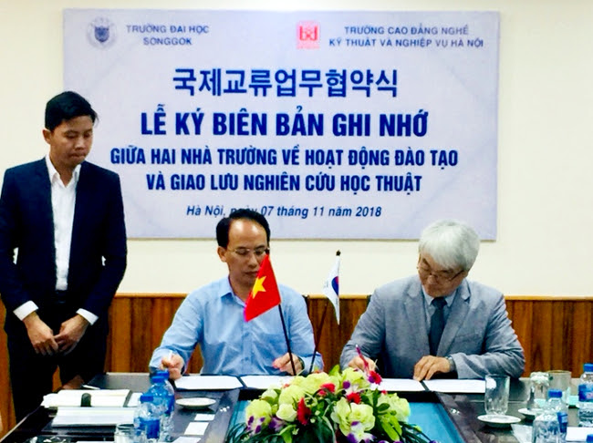 Sáng ngày 7/11/2018, tại phòng họp nhà A - Trường Cao đẳng nghề Kỹ thuật và Nghiệp vụ Hà Nội đã diễn ra lễ kí kết Biên Bản Ghi Nhớ giữa trường Cao đẳng nghề Kỹ thuật và Nghiệp vụ Hà Nội và trường đại học SONGGOK - Hàn Quốc.