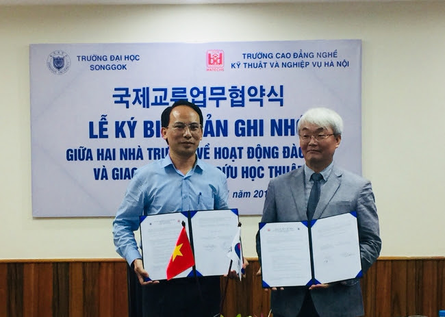 (Hatechs) Sáng ngày 7/11/2018, tại phòng họp nhà A - Trường Cao đẳng nghề Kỹ thuật và Nghiệp vụ Hà Nội đã diễn ra lễ kí kết Biên Bản Ghi Nhớ giữa trường Cao đẳng nghề Kỹ thuật và Nghiệp vụ Hà Nội và trường đại học SONGGOK - Hàn Quốc.
